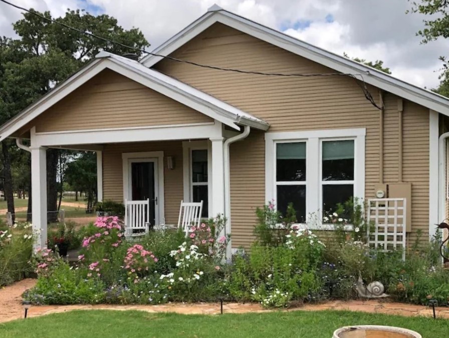 Located three miles from Main Street, this 2021 fully-renovated 1930s Farmhouse sits on five acres. This home is far enough way to enjoy views and wildlife in the morning and sunsets in the evening, while still being close to shopping, restaurants and more. The home can sleep four guests and is pet friendly. One bedroom has a king bed and one has a queen. There are two bathrooms. The kitchen comes fully-equipped. Outside there is plenty of room to relax around the fire pit. No children.