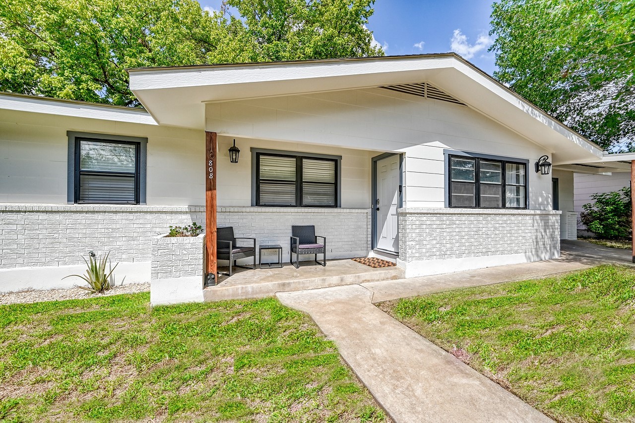 Indulge in the luxury of this modern and upscale four-bedroom home, just a short 3-minute drive from the lively and historic downtown Fredericksburg, TX. This elegant and inviting hideaway is perfect for families and groups of friends, providing ample space for everyone to relax and unwind, sleeping up to 8 guests. The living room features a cozy sofa and a large HDTV on a stunning wooden cabinet, while the crisp white kitchen boasts modern appliances, including a stainless steel refrigerator, dishwasher, microwave, and electric cooktop stove. With four bedrooms and three bathrooms, there's plenty of space for everyone to enjoy a peaceful and relaxing getaway. After a day of exploring the local vineyards and shops on Main Street, head back to the home and step outside to the backyard oasis, complete with a hot tub, cozy firepit, and a large covered patio. Grab a bottle of Texas Hill Country wine and gather around the crackling firepit for an unforgettable evening.
