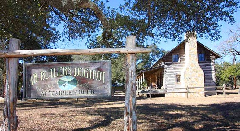 The Dogtrot at Triple Creek in Fredericksburg is a private getaway in the scenic Texas Hill Country. Whether you are planning a romantic escape for two, a girls shopping weekend or you are coming to the Hill Country to complete your first 100 mile bike ride, the owners are delighted to offer the beautiful setting of The Dogtrot at Triple Creek. The Dogtrot is one of the Hill Country’s most successful and well known guest houses. The log cabin is built in a southern style called a “dogtrot”. A dogtrot is a building with sleeping quarters at each end joined by a breezeway in the middle. The Dogtrot was originally built on the banks of the Cumberland river in Tennessee. In 1997, it was moved to the Texas Hill Country. The Dogtrot has been inspected repeatedly and was given an “outstanding quality” certification by Historic Accommodations of Texas for 10 consecutive years. The entire property is smoke-free. It offers two suites for guests. Each suite can accommodate up to two guests. Each suite offers a private entrance, a King-size bed, a Kitchenette with small refrigerator, toaster oven, microwave and Keurig coffee maker, wood burning fireplace, Jacuzzi bathtub and shower, WiFi, and Roku TV.