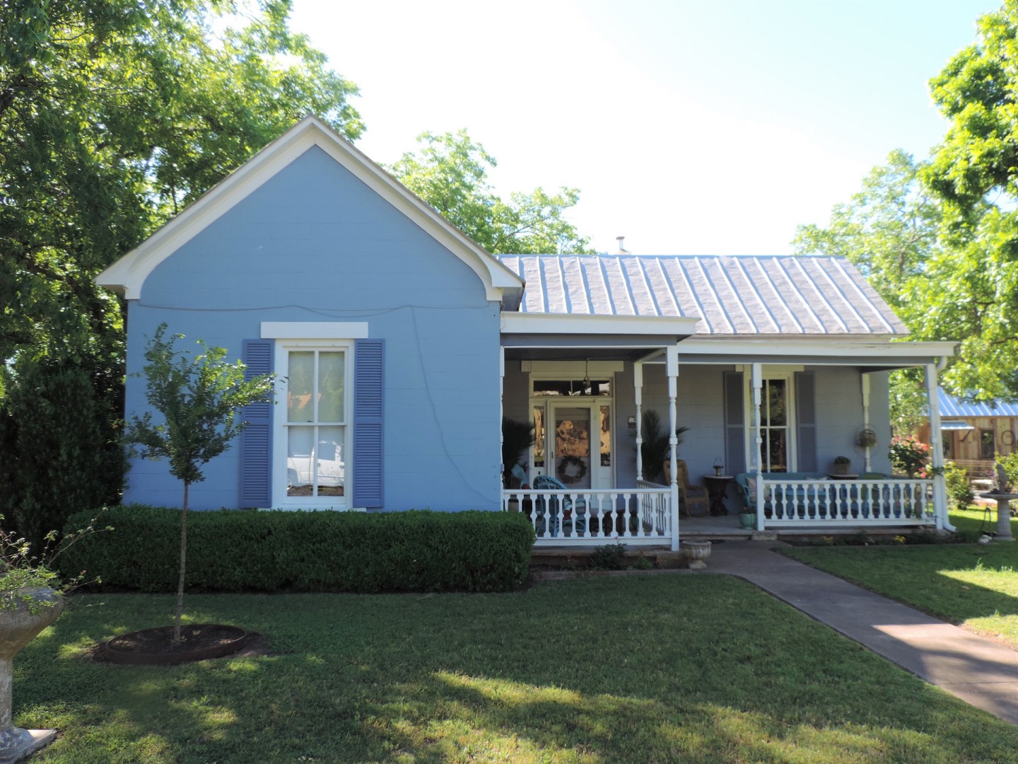 Located on Cora St, one of the most charming and historic streets in town, Alte Friedrichsburg doesn’t disappoint in telling the history of early 1900’s Fredericksburg. Lavishly decorated with native German settler antiquities, this is one not to be missed by aficionados of history and unparalleled elegance. Arriving at the home, you can’t help but be immediately charmed by its cheerful pale blue paint and inviting front porch. However, these two aspects are just a taste of the wonders that await you inside. Branching off from a pleasant foyer, to the left you’ll find a resplendent parlor occupied by opulent seating, a lavish oversized rug, and handsome historic oak flooring while to the right lies the first bedroom, appropriately named “the honeymoon suite,” that features a grandiose canopy bed complimented by the oak floors continued from the parlor and foyer. Further in are a lovely second bedroom with an ornate wooden headboard and a second seating area that is a bit less formal than the parlor but just as exquisitely furnished. Both bathrooms in the home feature desirable gray stone floors with one featuring a romantic clawfoot tub with handheld shower and the other a modern walk-in shower. The true gem of the home though has to be the spectacular dining room. A grand oak table with seating for 8 is encircled by exceptional wooden display cabinets brimming with delicate crystal and polished silver that is certain to make each meal a special occasion. Your host, Glenn Treibs, is a well known local historian and is available to his guests to answer questions regarding the history of the house and Fredericksburg at no charge.