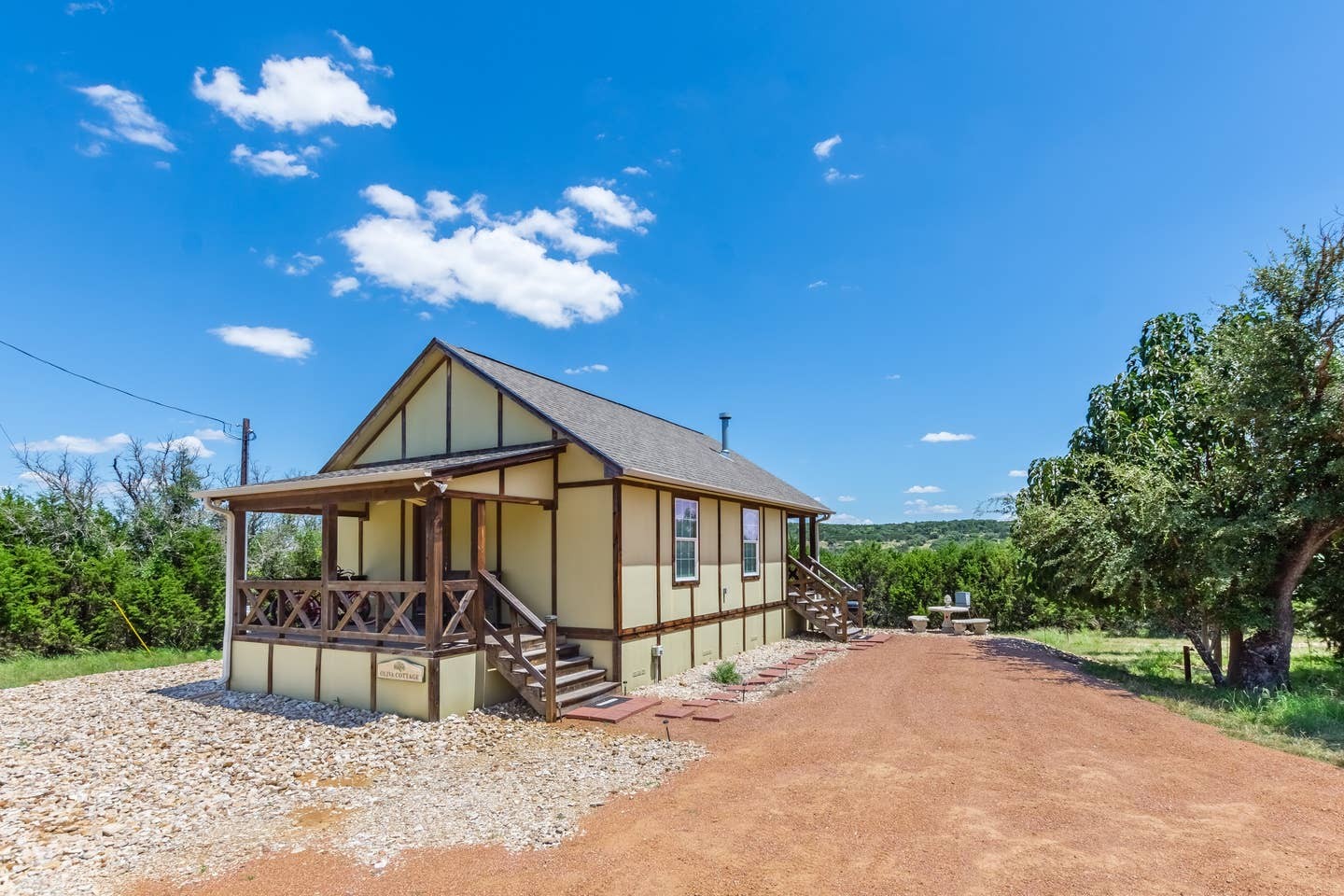 Appian Way Cottages have all the modern conveniences and amenities you want coupled with the awe inspiring Texas Hill Country as a setting. The owners of Appian Way have tried to anticipate your every need. The cottages boast a King-size bed, leather couch, oversized recliner and a full kitchen for your convenience. A private hot tub has been placed on the back porch for your enjoyment. Sip on a glass of wine and take a romantic soak after a long day of shopping and sightseeing. There are five cabins at Appian Way including Avalon, Celtic, Oliva, Provence and Tuscan.