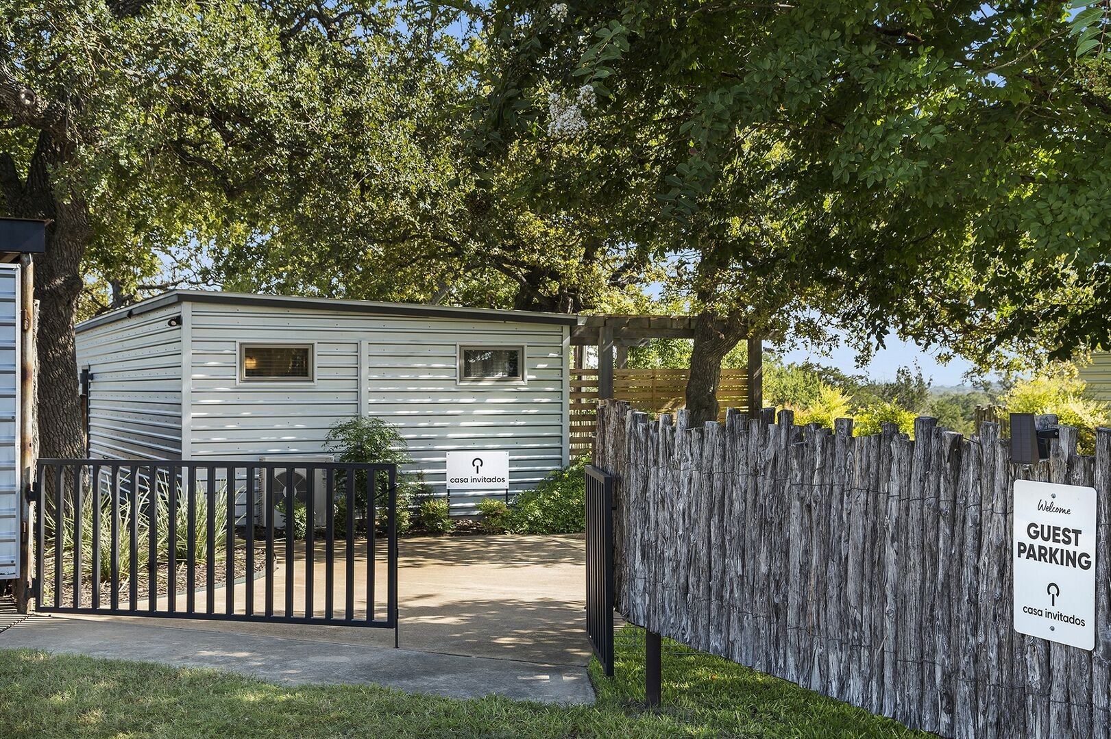 Located nine miles south of Fredericksburg, Casa Invitados can sleep two guests. There is one bathroom with a shower/tub combo. The kitchenette features a compact refrigerator, top freezer, microwave, Keurig coffee maker, hot water kettle and toaster. Breakfast of baked goods and pastries is served. The 50-inch TV features Roku and satellite TV with NFL Sunday Ticket. Outside, there is an observation deck for viewing wildlife, watching the sun set.