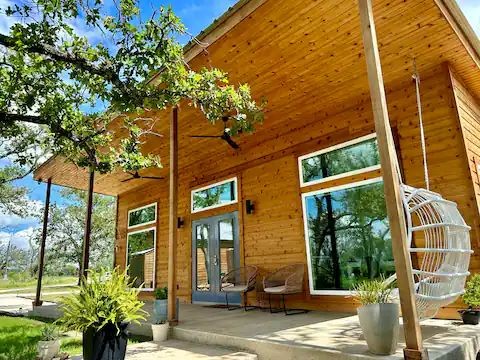 Casa Serena is a serene escape in Texas wine country. This cabin sits on 26 acres and is located next to Ab Astris Winery and the historic Lyndon B. Johnson Ranch. Watch wildlife graze from the front porch or enjoy the comfortable couch, placed in front of two expansive windows. The kitchen comes fully equipped with a gas range, small refrigerator and microwave. For coffee lovers, there is a gourmet pour-over coffee system. Outside, there is a charcoal grill and wood burning fire pit. The bedroom features a queen size bed and a full bathroom with views of the outdoors. Sleeps 2.