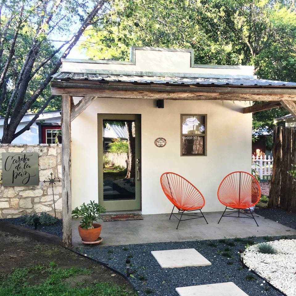 "House of Peace" - updated modern cottage easy walking distance to the MarktPlatz and Main Street shopping, dining, museums and wine pick up tours. King size bed w/Full sleeper sofa. Free Wifi w/Roku for streaming. K-cups. Jacuzzi tub w/shower handle, NO shower. Outdoor grill available. Kitchenette. No laundry facility. A fresh, modern design mix with old world Spanish traditional which translates into a comfortable, clean space with minimal distractions so you can clear your head from all of the stress of your every day life. You'll have your own private casita on the owners property with your own parking, entrance. It is a separate house with a shared yard. Maximum of four guests.