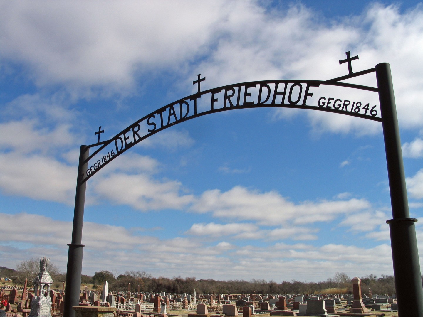Fredericksburg has two main historic cemeteries located at the east and west ends of town. Der Stadt Friedhof, located at the 300 block of North Lee Street and the Catholic Cemetery, located on Catholic Cemetery Road are both known for their striking granite markers and headstones, many in German.