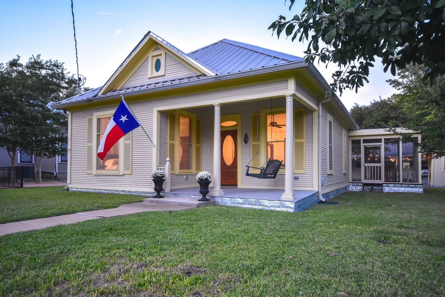 In Fredericksburg's Historic District - Century House is a Queen Anne Victorian cottage, built in 1916. This lovely cottage has just been updated by the owner, a professional interior designer. There is a full kitchen and two bedrooms and one bath can accommodate up to five guests. The outdoor fire pit area is the perfect place to enjoy an evening under the stars. The owners even include oak firewood for your convenience. Other amenities include off street gate-secured parking for up to three vehicles, a front porch swing and a large screened in porch where you can enjoy breakfast outdoors in your slippers.