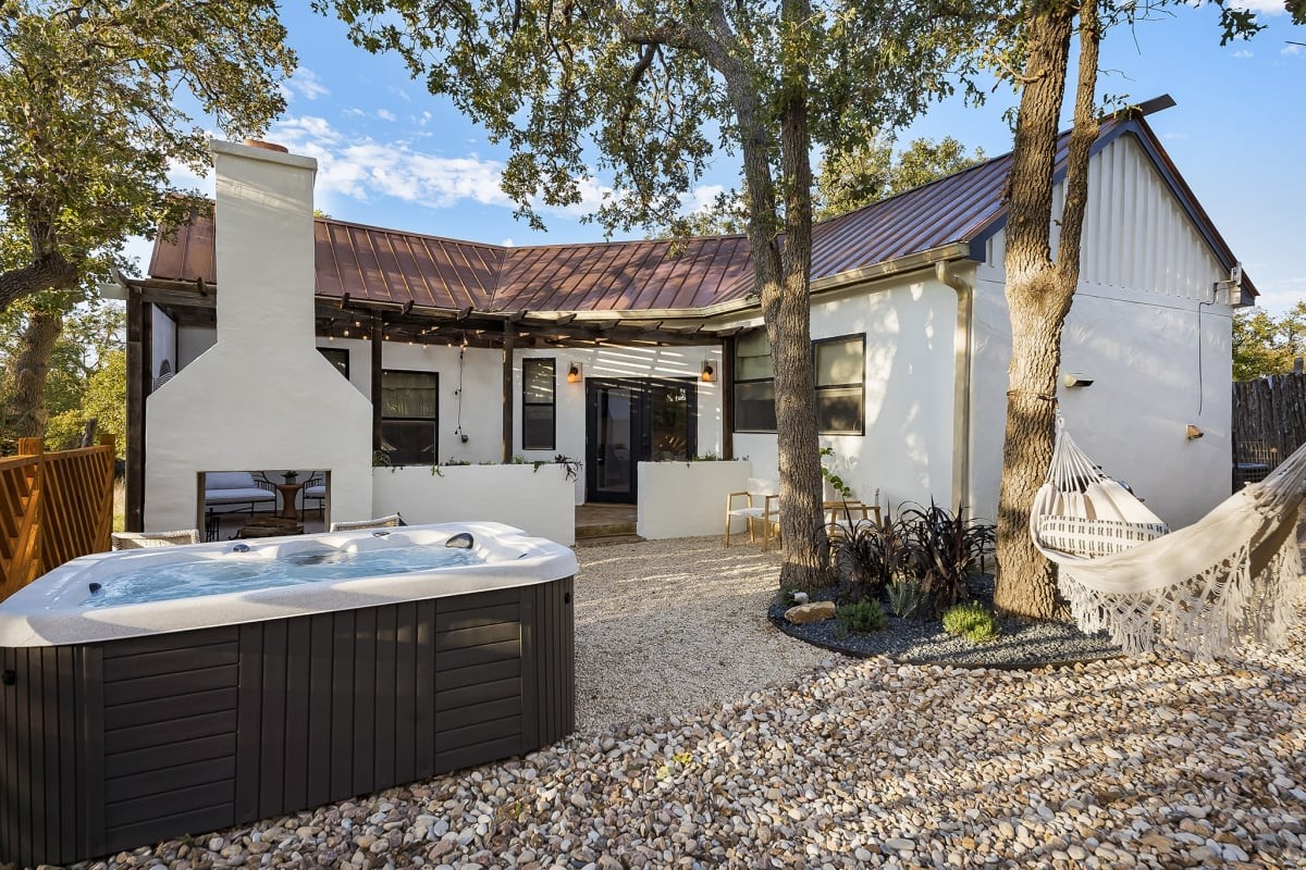 Coco Casita is an adorable cottage located on six acres of woods and is perfect for couples. The outdoor space includes an enormous fireplace, hot tub, grill, outdoor seating and hammock. Inside, there is an ambient fireplace, full kitchen, king canopy bed. The bathroom includes a walk-in shower. Coco Casita is only eight minutes to downtown. No children and no pets.