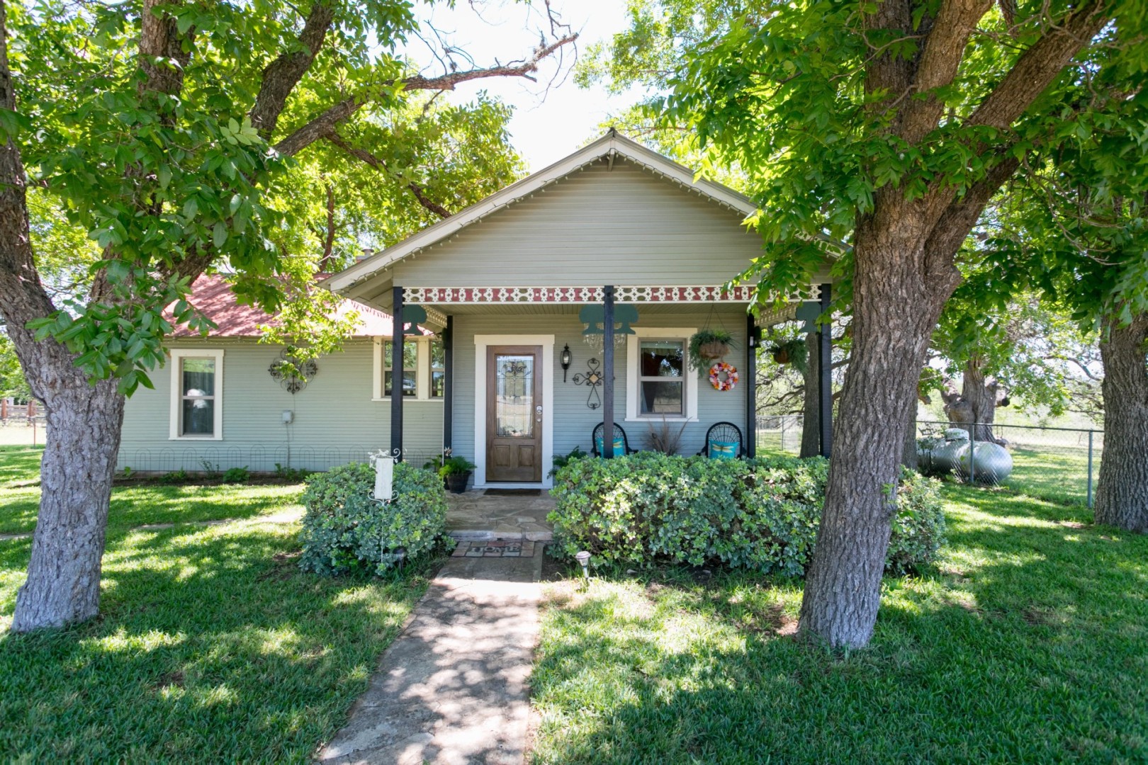 With the Pedernales River flowing behind this 1900s farmhouse you will find a home filled with family memorabilia and lots of family antiques. Come relax in the living room and listen to the soft relaxing music that awaits you when you enter. You can watch TV or perhaps a movie, or maybe read all about the history of the home and the family. The large farmhouse kitchen has everything one might need when away from home. Coffee, teas, popcorn, snacks, dry cereal are just a few amenities provided. Upon request, a variety of breakfast items can be provided at no additional cost including eggs, homemade sausage, homemade pancake mix, oatmeal, bagels with cream cheese, and homemade angel biscuits. Two bedrooms and one bathroom can accommodate up to 4 guests.