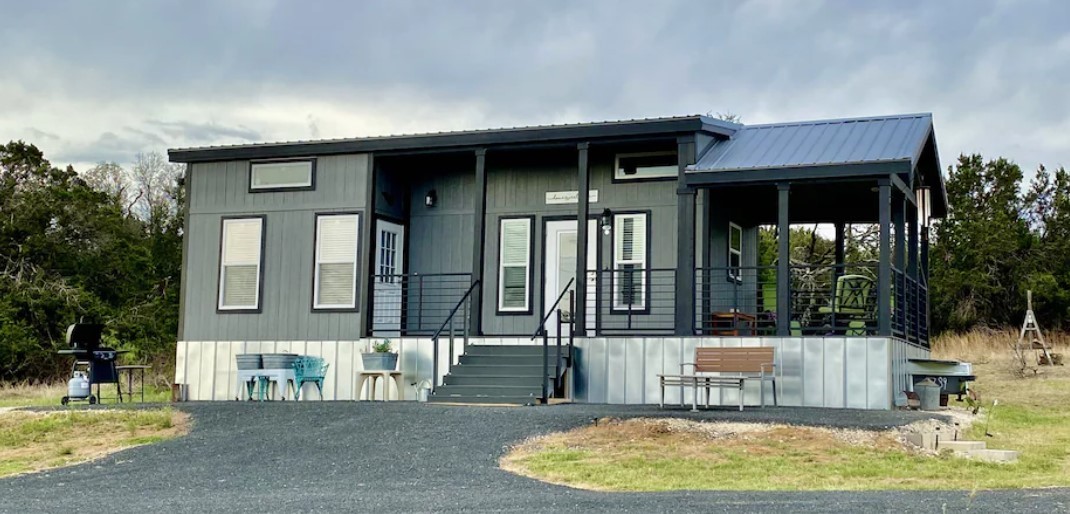 Cute Tiny House is located just minutes from downtown Fredericksburg. This house has a full kitchen and a deck that is ideal for watching sunrises and sunsets. This home is a one bedroom, one bathroom home that sleeps two. There is also a gas grill.