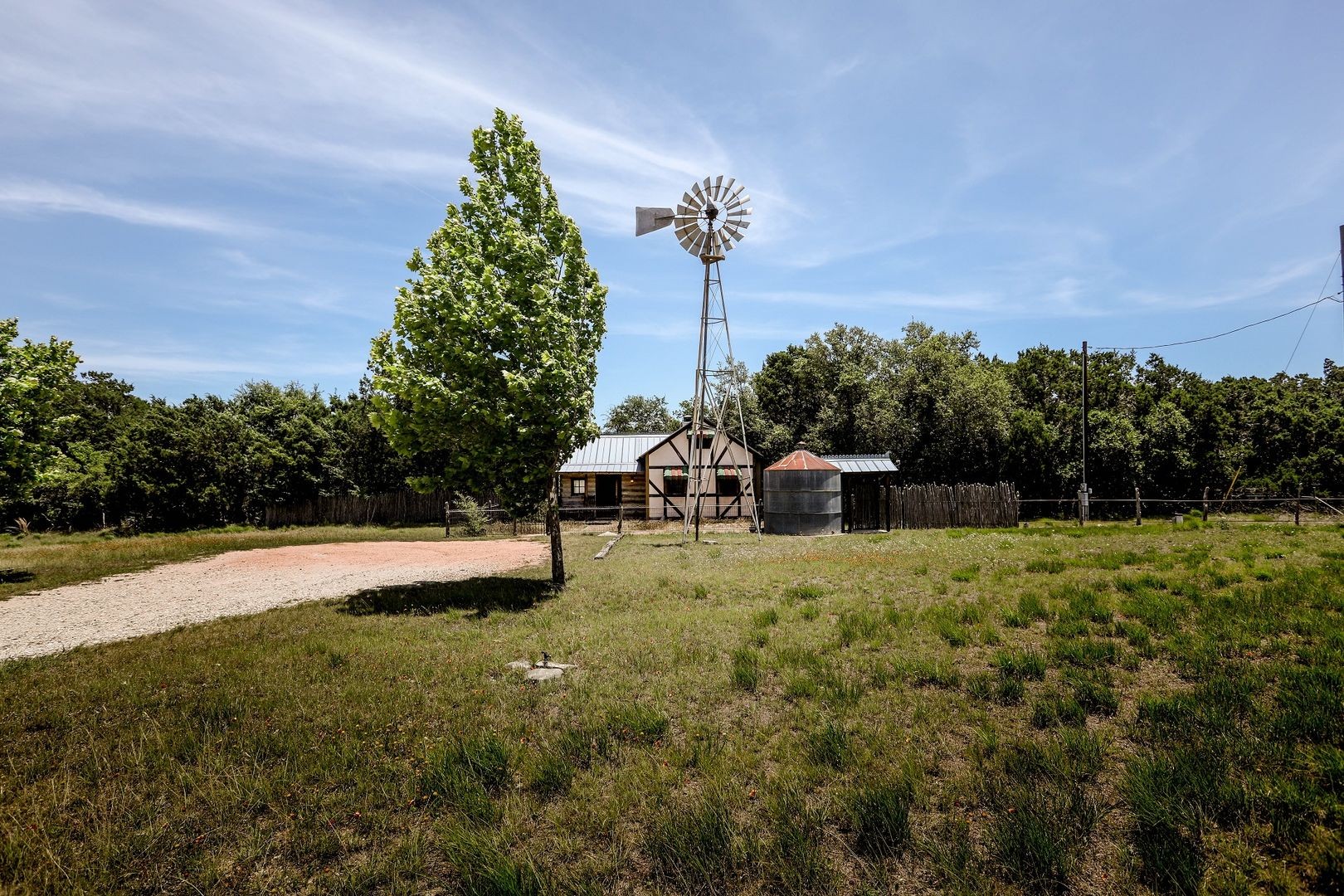 Located only a few miles from town this log cabin dates back 150 years. Built by your host's great grandfather, the log cabin was recently moved to it's new home from the family home-place just a half mile away. The original log cabin is small-a fachwerk addition was added during the restoration. A German style wire fence and gate border the house and yard along with a windmill to create a feeling of days-gone-by. The wrap around porch begins at the front of the house and goes around to the back overlooking fields and pastures. Inside the living room is the original log cabin. A comfortable sofa (queen-size sleeper) and array of antiques are found. Stained etched cement floors are found throughout the house. Sleeps two guests.