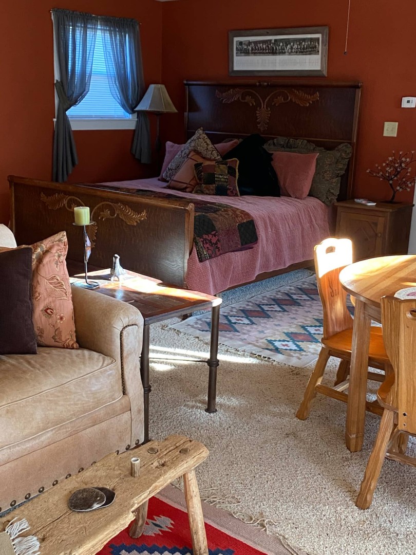Guesthouse B is a studio with a king-sized bed, walk-in shower and total privacy suitable for two guests. Featuring Texas-style decor, the property also features a sofa and living area with private patio, covered parking, a washer/dryer combo, cable tv and a kitchen.