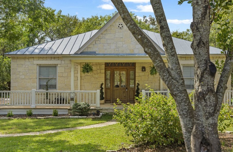 Located seven blocks from Main Street, Hackberry Haus is a private guesthouse that can sleep up to four people. One bedroom has a king bed and the second bedroom has two twins. There are two bathrooms, each with a walk-in shower. The kitchen is fully-equipped and includes a Keurig coffeemaker. Outside there is a hot tub, fire pit, and front and back porches with outdoor seating.