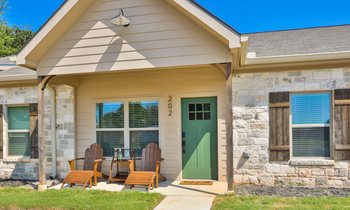 Hill Country Haven is a newly built, modern rustic townhome just off of Main Street in Fredericksburg. The home has two bedrooms, each with queen beds and two bathrooms. The kitchen comes fully-equipped and enjoy a free bottle of wine with your stay. There are three smart TV's in the home as well as a washer and dryer. The property can sleep up to five guests.