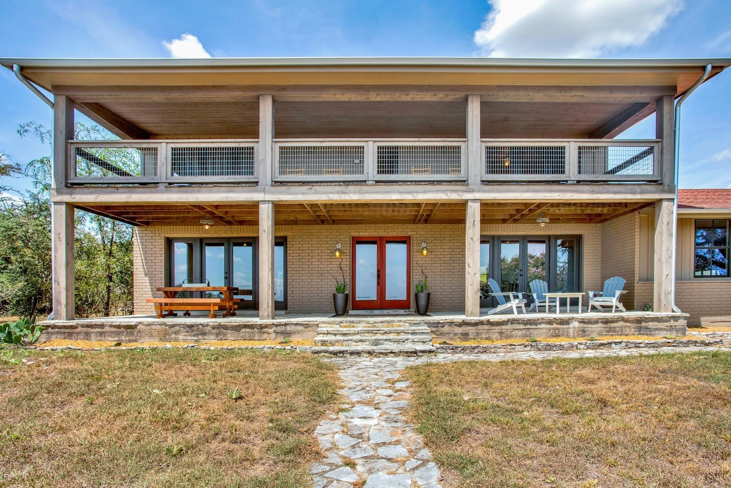 Forget your worries in this spacious and serene space. Perched atop the hill, Hilltop Home is a 3 bedroom/ 2.5 bath brick home that takes full advantage of the spectacular views. Situated on 6 acres & located only 4 miles North of Fredericksburg, this two story home offers great upper & lower porches that spans the entire front of the home with million dollar views. Inside you will find a tastefully updated kitchen, big rock fireplace, bonus room which could be a 4th bedroom or office and formal dining. Sleeps 10.