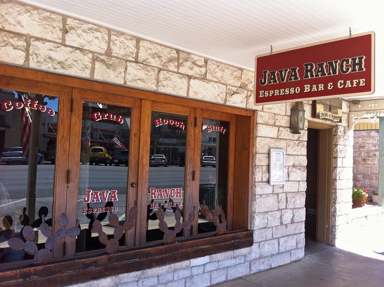 Java Ranch Espresso Bar and Cafe, serving breakfast and lunch. Conveniently located on historic Main Street in downtown Fredericksburg, Texas, they serve the finest hot or iced coffee drinks anywhere including lattes, cappuccinos, Hill Country roasted brewed coffee, Americanos, mochas and specialty drinks. Hungry? Step up to the counter to try their wide assortment of pastries and pies from the bakery as well as breakfast or lunch from the kitchen. They also offer smoothies, beer, wine, frozen margaritas, breakfast tacos, deli style sandwiches, salad wraps, soups and assorted pastries, including: cookies, pies, muffins, croissants, and strudel. Locally owned and operated "Keepin' it Texas Cool!" for over 16 years y'all.