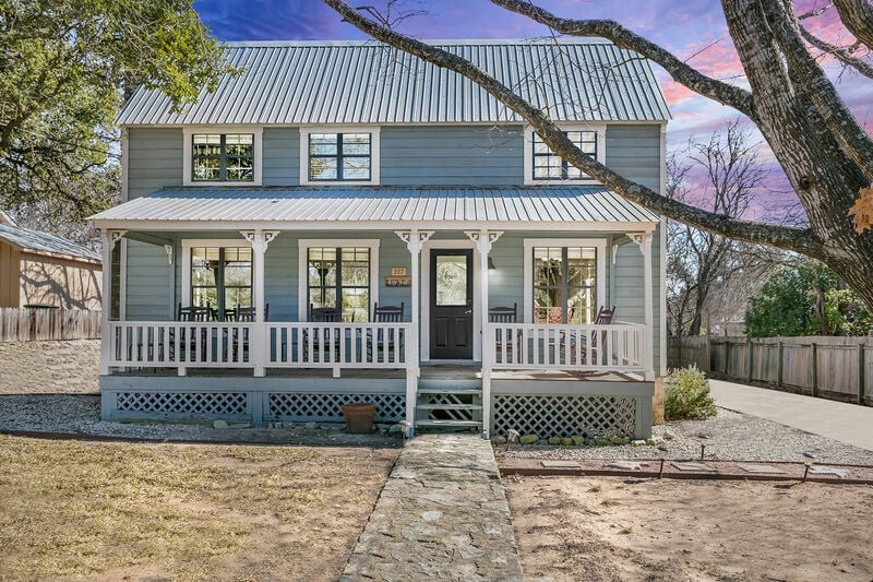Located 1.5 blocks South of Main Street, Kirsche Haus sleeps 10 guests. There are four large bedrooms; three with king size beds and one with a full-size bunk bed and twin trundle. There are two full bathrooms. The kitchen comes fully-equipped and the living room includes a large TV with Amazon firestick and fire place. Outside, there is a covered deck with seating, fire pit, washer pit, and bocce ball court. Carport and off street parking available. Children and infants welcome. No pets.