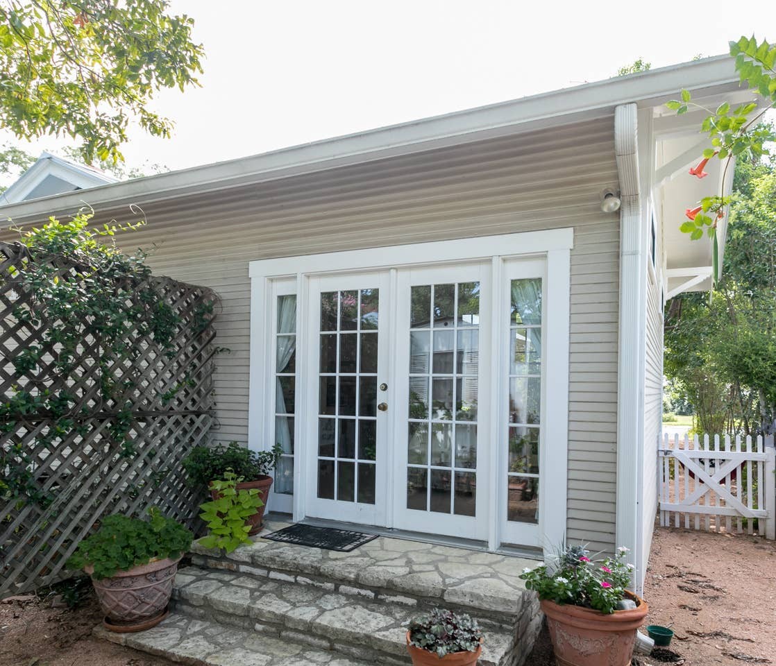 Just a few blocks off of Main Street and situated in a quiet residential neighborhood. French doors offer an inviting view into the garden. The focal point of your suite, a pencil post bed, television with vcr and bedside tables with lamps. A drop leaf table offers a lovely place to enjoy your coffee. The bath is private with a tub/shower combination. Your hostess lives in part of the house, completely separate from your suite. The air conditioning thermostat is located in your host’s quarters, so if you need regulation, please let her know. There is a space heater for the cooler months.