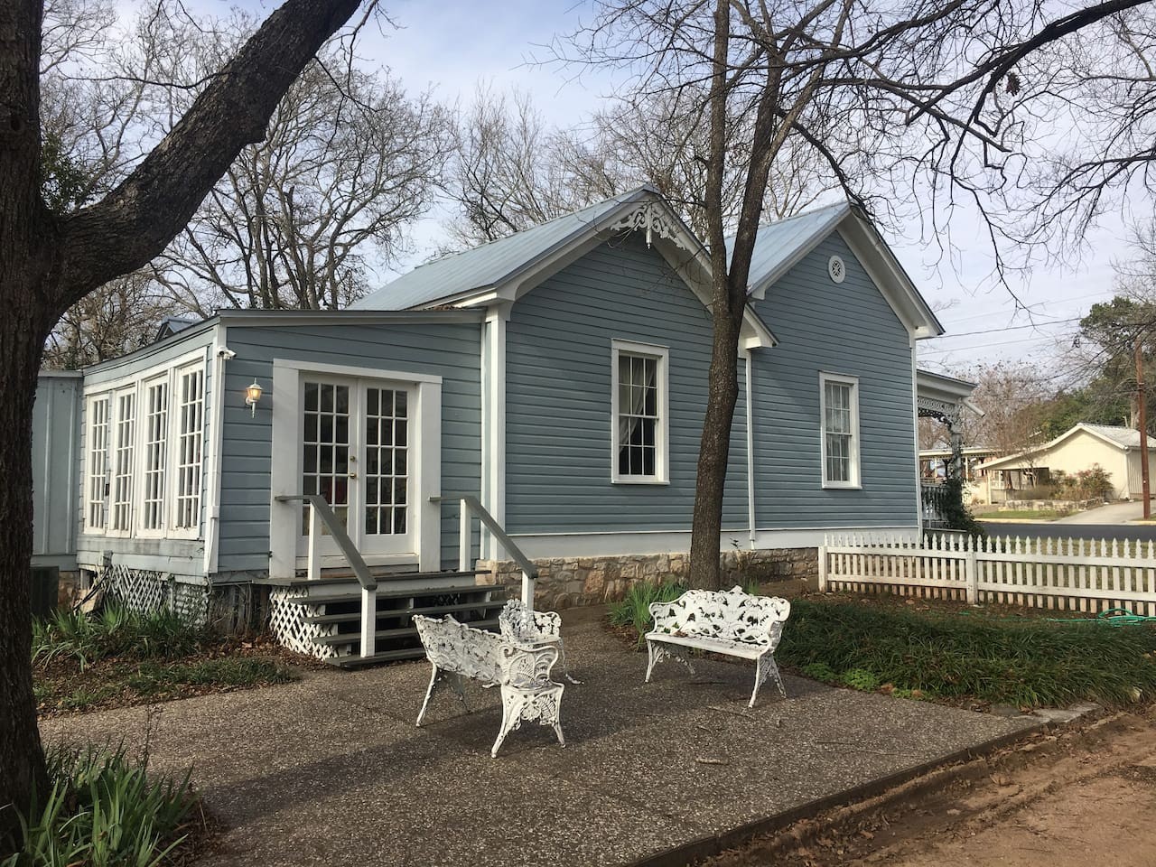 This frame Victorian-style house was built in 1899. The kitchen is fully furnished for you to use. Two complete baths, one having an antique footed tub and the other a shower. Perfect for couples traveling together or simply a romantic haven. Living room offers an antique sofa and high back chair. Dining room with stylish table. Master bedroom has king size canopied wrought iron bed. A second bedroom has queen-size white iron bed. The living/dining rooms separate the two bedrooms. Inviting sun with white wicker table, chairs and rocker plus a little garden cabinet complete with a birdhouse checkerboard. There is a backyard patio outside the sun porch. Accommodates 4.