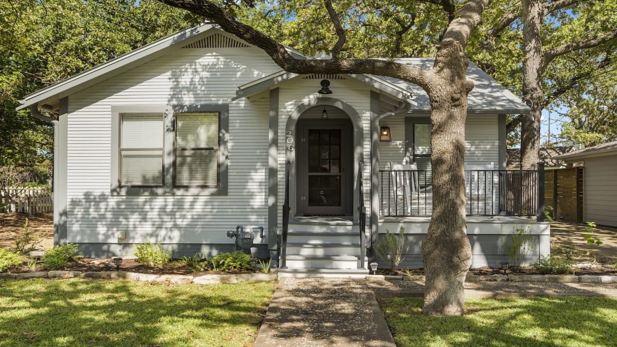 OsterHaus was updated in 2021 and is located eight blocks north of historic Main Street in Fredericksburg, Texas. The 2-bed, 1-bath rental sleeps up to four people featuring king beds. The property also features a full kitchen. Unwind outside in the large, lush backyard with a relaxing soak in the private hot tub, kick back around the fire pit, and sip a drink on the deck.