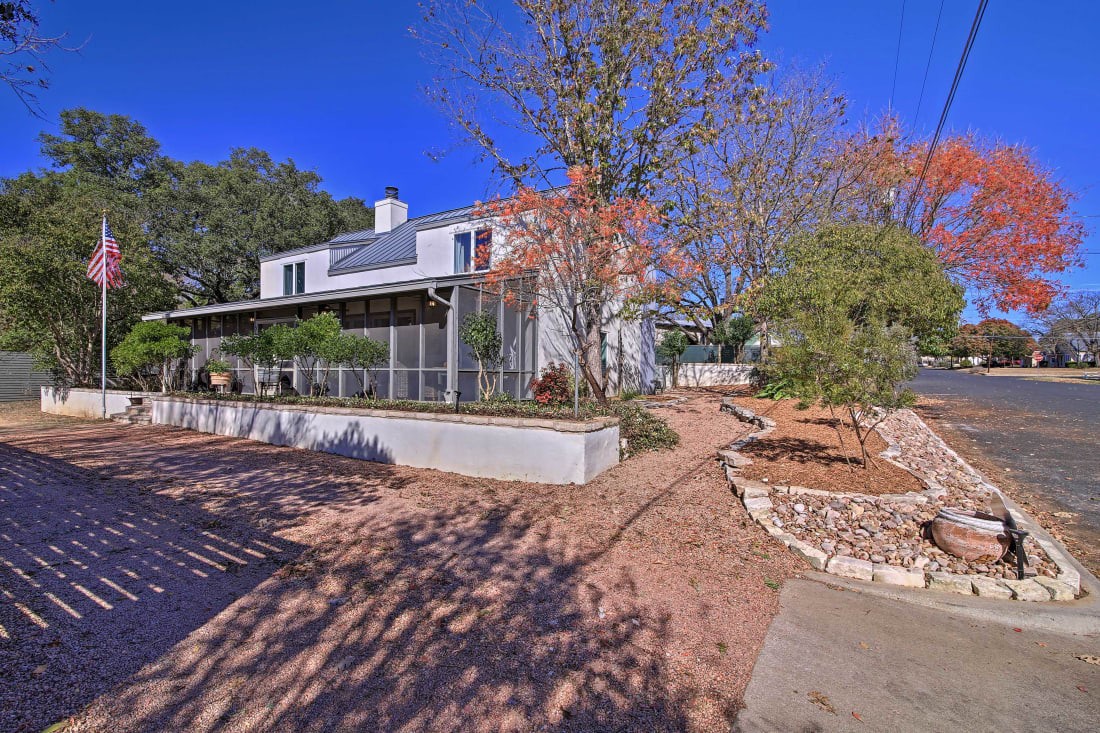 The Red Stair Haus is a charming four king bedroom, four private bath hideaway located on the west end of town just 6-8 blocks from Main Street shops, restaurants, art galleries and tasting rooms. Perfect for a couples getaway or girls trip, all suites provide guests a comfy, private retreat featuring a different nature theme reflective of what you will discover while exploring the Texas Hill Country. Guests will also enjoy a large open living room with comfortable seating, a gas fireplace, Smart TV and free high-speed WiFi. The living room boasts soaring ceilings and beautiful windows which let in lots of natural light. Downstairs you will also find a kitchenette, barista-inspired coffee bar and dining area. Guests will be spoiled with the numerous amenities including luxury linens, complimentary locally made Fredericksburg Farms toiletries, plush custom robes and dressing vanities. Completing the allure of this lovely property is the screened-in porch which features a cozy conversation area as well as an outdoor dining space, perfect for enjoying a morning cup of coffee or a glass of wine in the evening. The Red Stair's beauty, comfort, and unique layout featuring four king bedrooms with private en-suite bathrooms, make it an irresistible choice for your next retreat to the Texas Hill Country.