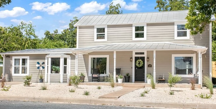 Rosewood Haus is an early Fredericksburg home that was built in 1914 and is located eight blocks from Main Street. There are four bedrooms, three bathrooms, a large kitchen and dinning room, two living spaces and a backyard with pool, spa and fire pit. There is plenty of outdoor seating, including the front porch and outdoor covered living area. The master suite has a king-size bed, the second bedroom has two queens and the other two bedrooms have king beds. It can sleep 10 guests. Rosewood also has EV charging and off-street parking.