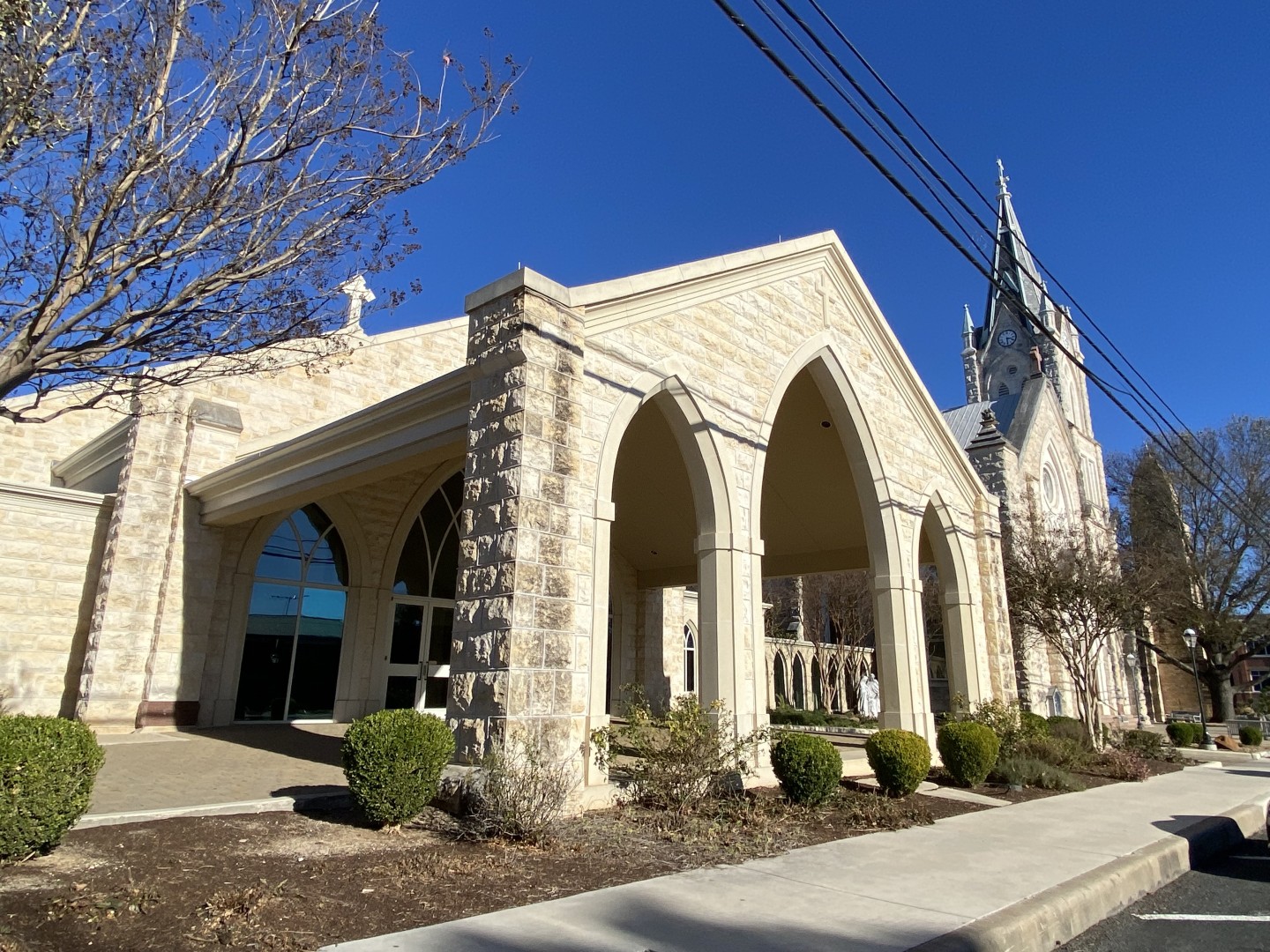 Operable partitions to divide up the main portion of the building into several configurations of dedicated meeting rooms and large assembly spaces allowing for multiple functions to occur at the same time. There is a dedicated bride's room, a fully equipped kitchen, ample restrooms, and a covered drop-off which provides access to both the parish center and the church. Room with round or rectangle tables and chairs