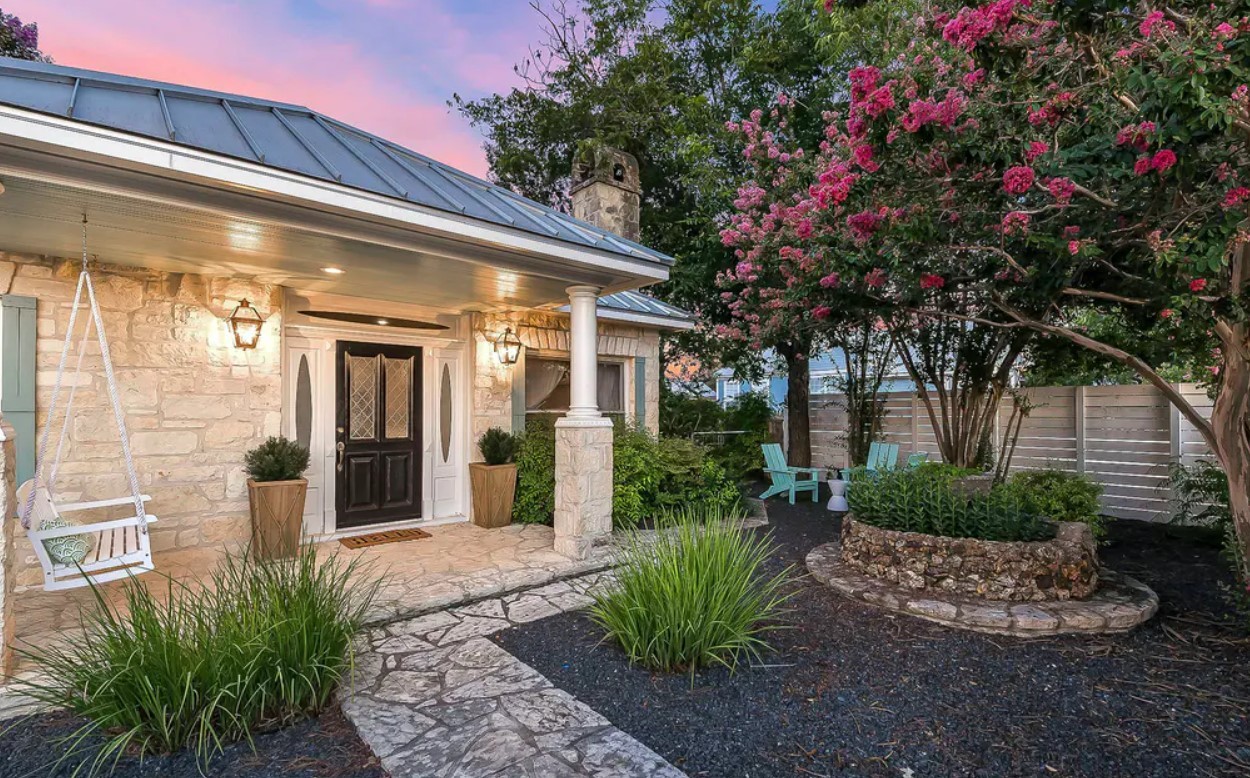 Stonewall Haus and Bungalow consists of four different rentable properties, including three bungalows and one main haus. They can be rented all together (4 total units) for a total occupancy of 12 or separate. The Main Haus, a restored 1920s farmhouse, can accommodate four guests. It has a main living room with a wood burning fireplace, a large kitchen. The master suite includes a bathtub/shower combo and a king bed. The second room features a queen bed and its own bathroom. Outside there is a private fenced yard with multiple seating areas and a porch swing. Bungalow 2 sleeps two guests and features a walk-in shower, kitchenette and dining table. Bungalow 3 is the downstairs unit and has covered parking, a large private patio and a full kitchen. It can sleep two guests in a king size bed and has a full bath with walk-in shower. Bungalow 4 sleeps three guests and is the upstairs unit. It has a king bed, large kitchen and a daybed. It also has a large outdoor area.