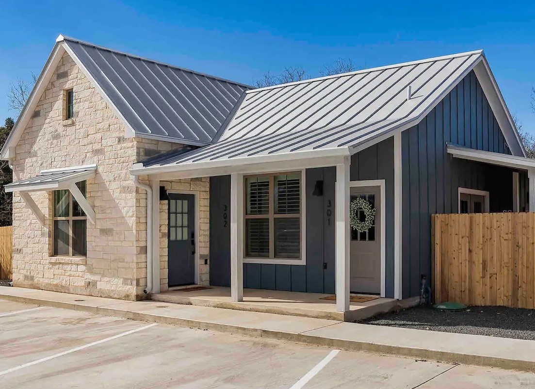 Strawberry Suite is an upscale, one bed, one bath condo located in the heart of Fredericksburg and just a short walk to Main Street. The condo features funky, retro artwork by The Whiskey Ginger as well as a 55-inch smart TV and a queen size murphy bed/sofa combo. In the bedroom, there is a king size bed and 55-inch smart TV in the 'rustic glamourous' master bedroom. Elsewhere, in Strawberry Suite there is a fully stocked kitchen, a spacious patio offers two different seating areas as well as a picnic table for outdoor dining. Also included in the patio area is a unique and rustic fire pit with four chairs.