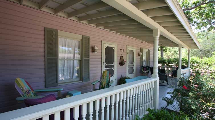 Studio B Guest House is a turn-of-the-century Sunday House that is located only 3 blocks from Historic Main Street. This guest house offers five sleeping areas for up to 14 people and 3 1/2 baths. Studio B also has a nice, fully-stocked kitchen area as well as a cozy living room with cable TV. This house has very unique décor and has many little rooms to explore and discover. This guest house is a perfect place for a ladies retreat or family gathering.