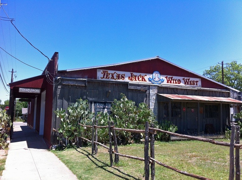 Texas Jack's is the premier cowboy action superstore, sometimes called "The Greatest Store on Earth". The store abounds with 1870's cowboy dry goods, both new and original. You'll find Frock coats, gambler shirts, fancy and work vests, as well as Victorian attire for the ladies as well as modern western clothing for men and women. The store also serves as the Cimarron Fire Arms Company showroom, so there is always a large stock of cowboy firearms on hand. Elk, deer, antelope and buffalo mounts adorn the walls much as would have been in an 1880's mercantile emporium. Texas Jack's is housed in the old livery stable and forge, constructed in 1889. The livery once served as a stage line stop for fresh horses or repair for the stage headed from San Antonio to Llano.