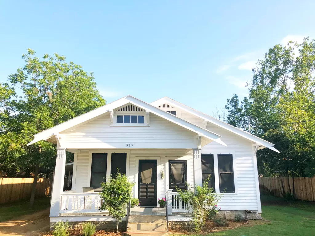 The Bell House is a 1924 bungalow that has been completely remodeled and updated in 2017 to provide a relaxing atmosphere close to the amenities of Fredericksburg, yet tucked away in a quiet neighborhood. The property is conveniently located 2 blocks from Main Street and Highway 290. Guests are less than a two-minute drive to the downtown shopping areas, as well as easy access to wineries and vineyards. The property features a modern kitchen with a large island and separate coffee bar, stainless appliances, and farm sink. The open-concept kitchen and living area lend itself to casual entertaining and conversation. The sun room/dining area has a table for 6 that overlooks the deck and backyard. Original hardwood floors flow throughout the home. The backyard is spacious, fenced for privacy, and has a large deck with patio furniture and a fire pit with seating for six. The two bedrooms have a queen-size bed and two twin beds. There is also a full-size air mattress if needed. The bathroom has a full-size tub/shower combination.