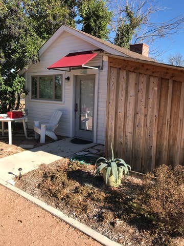 The cabin is a newly renovated vintage structure nestled only four blocks from main street Fredericksburg, Texas. The cabin is located in town, but once inside one feels an immediate sense of serenity and coziness. The cabin is fully equipped. The cabin is situated on almost an acre of land shared with a vintage airstream and three small homes. The crushed red granite driveway enters the property on South Milam and meanders back to the cabin. There is a large covered patio that is shared with the front home.
