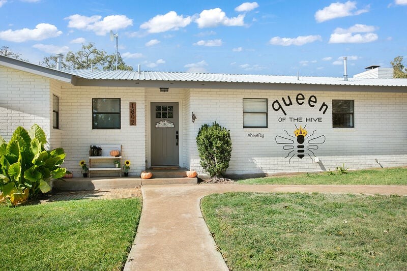 The Hive consists of four homes: one main house and three container homes. They can be rented all together or separately. They are located just outside of town, close enough to the action. The Queen sleeps six and contains touches of hexagons and bee themes. Dine at the full-size reclaimed wood table or hang by the bar. Enjoy gameday or lounging in front of the 55-inch TV. Take a shot at foosball. There is plenty of seating with oversized bean bags and a velvet sofa. Each of the two bedrooms are furnished with 400 thread count linens on king size beds, and the primary bedroom has a half bath en-suite. Outside, there is a fire pit, hot tub and plenty of seating. Bee, Pollen and Honey are container homes that each sleep 2 guests with a private bedroom with a queen bed and a full bath. There is a kitchenette with minifridge, cooktop, toaster and blender. The living room has a Smart TV a breakfast bar.