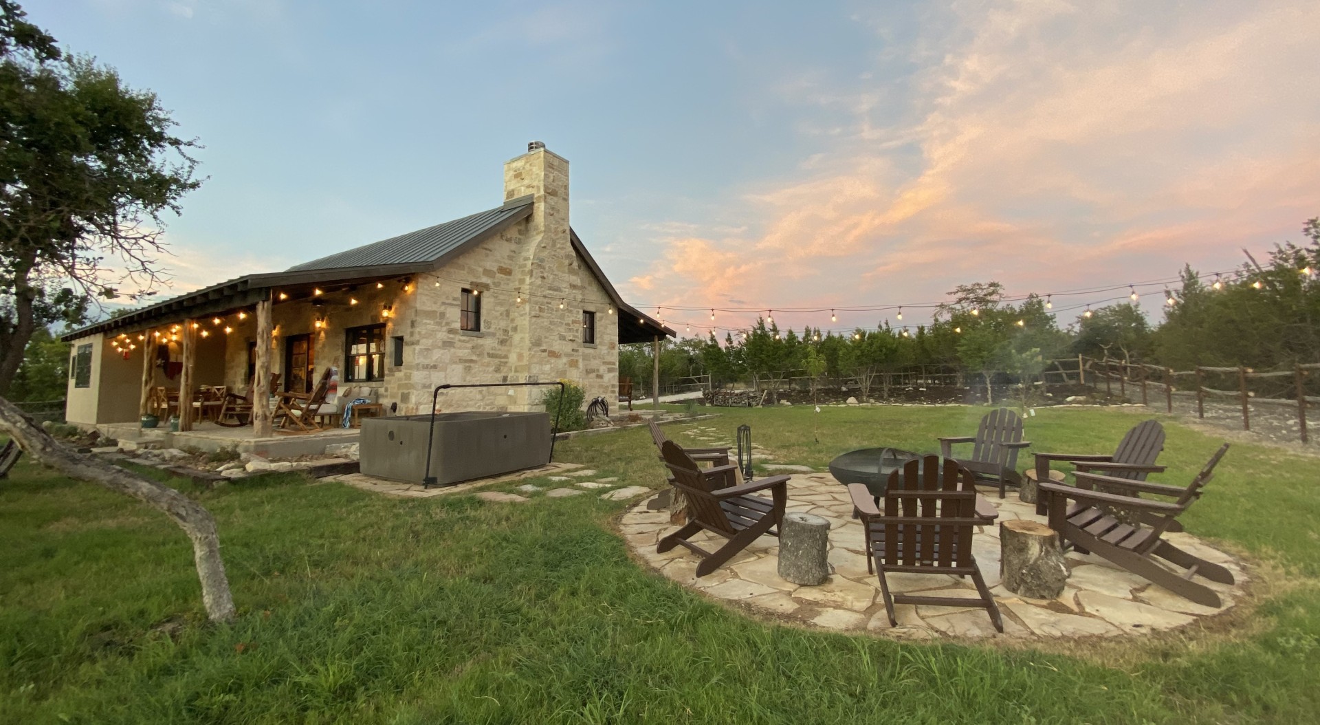 If you're looking for an unforgettable vacation home with an incredible history, look no further than The Outpost. This unique limestone and log cabin was constructed from various military, historical, and first-responder buildings from all across Texas, including The Alamo, Houston Firehouse #7, and the San Jacinto Monument. This truly unique property is only 14 miles away from the heart of downtown Fredericksburg and only 5 miles from Enchanted Rock State Natural Area. Nestled 2,100 feet high on a private mountain top, these 15 secluded acres are all yours to explore since there are no other cabins and no other renters on the property. The surrounding land is undeveloped and open on all sides making it feel like you have hundreds of miles to explore and the sunrises/sunsets are unbelievable. To the east is Enchanted Rock and a beautiful valley – a great place to sit and watch the sunrise. To the west, off the panoramic back porch, is another valley where the sun will rest for the day, but not before lighting up the sky with every color imaginable. After a day spent wine tasting, shopping, horseback riding, or hiking Enchanted Rock, you can gather around the firepit or use the telescope to stargaze. Have a cookout in the picnic area, or kick back in the heated six-person hot tub as you listen to the coyote howl at the sunset. Sip morning coffee on the covered patio and take in views of the Hill Country as you listen to the wild turkeys gobble and watch the deer grazing at the animal feeder. The property’s roadways and trails are ideal for walking, biking, hiking, and ATVing off-property. This rustic getaway is decorated with numerous military and first-responder artifacts yet also provides all the comforts and luxuries of home. The open floor plan features a welcoming living area with a wood-burning fireplace, TVs, and fun perks that include a telescope, binoculars, many board games, books, and the OUTPOSTBUSTER movie center (a large selection of DVDs). The full kitchen is wonderfully suited for all of your culinary needs. This family-friendly haven offers a gas grill for afternoon barbecues in the covered barn area, ideal for cookouts, watching TV, and gatherings with the group. A small inflatable pool, fan sprinkler, and portable play yard are available for the kiddos to enjoy the outdoors. Find a cornhole game to play outside, an outdoor speaker system with Bluetooth capabilities, Wii gaming system, satellite TV, free Wi-Fi, and an EV charging station. Even more fun elements of this memorable stay include a patch wall (bring your insignia or patches), a coin challenge, and on-site souvenirs for sale. One other item to mention, The Outpost has hidden rooms, trap doors, secrets, riddles, and puzzles. Two dogs allowed. Sleeps 8 with 2 bedrooms, 2 bathrooms,1 sleeper sofa, and 2 cots. Can sleep an additional 4 guests if you rent the RV area. Managed by STRACT HQ Property Management Company.