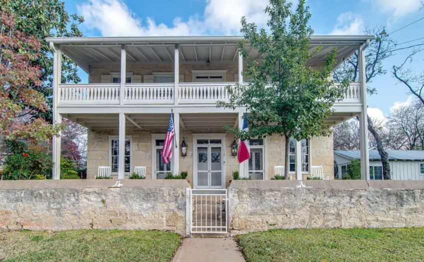 Nestled just two blocks off of Fredericksburg's Main Street, the charming historic 1870s The Rosebud is a quintessential Fredericksburg home to unwind with friends and family after a day of shopping and wine tasting. Enjoy your morning coffee on the upper or lower patio rocking chairs and kick your feet up around the fire pit after an easy stroll home from dinner. This home is ideal for a family gathering, a bridal party or couples getaway. This designer home sleeps up to 6 guests with two queen beds outfitted in luxury linens in each of the spacious bedrooms, and a separate sleeping alcove with a daybed and trundle to accommodate any combination of family, friends and small children. The home features a downstairs powder room and two full en suite bathrooms on the upper level, as well as ample closet space for luggage storage. Yard games and a foosball table will keep even the most active guests busy, and board games are available for play in the living room that comfortably seats six people. Although we encourage guests to unplug, a separate open concept office nook provides a place to quickly catch up on emails. Other amenities of the home include a complete laundry room, fully-stocked kitchen, a variety of coffees with cream and sugar, a bottle of Fredericksburg wine, and a dining room to gather for meals. A pack 'n' play is available, along with sound machines, extra pillows and all of your essential toiletries.
