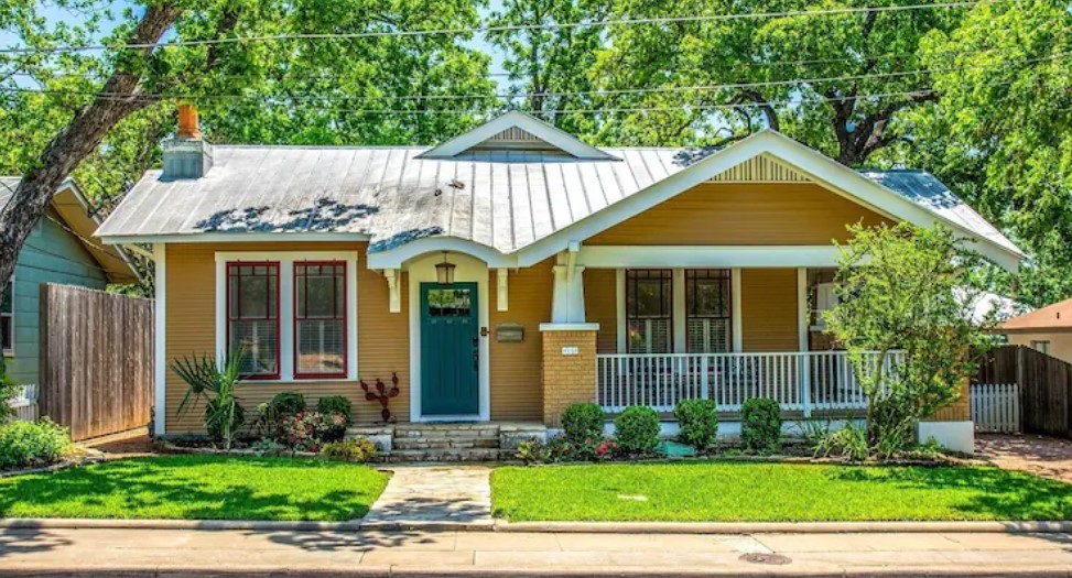 The Sunflower Haus is located just three blocks north of Main Street and can sleep up to seven guests. There are two bedrooms-one with a king and day bed and a second with a queen bed. The living room has a queen sleeper sofa. There are two bathrooms. The kitchen comes fully-equipped and has a traditional coffee maker. There is a Smart TV, free Wifi, indoor fireplace and seating both on the front porch and the backyard.
