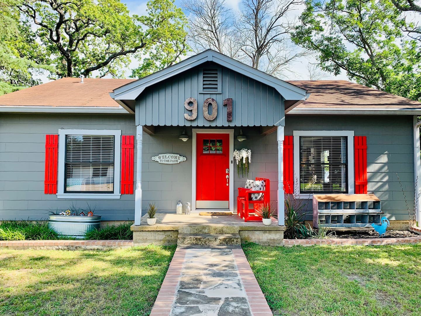 The Whiskey Ginger is a charming, quirky 3/2 home located in a quiet neighborhood just outside the center of town. Amenities of this charming, family favorite home include a full kitchen, a spacious open-concept living area, and a fantastic outdoor entertainment space with a BBQ grill, fire pit, and custom wine barn with lighting and seating. Inside this home you'll find three bedrooms, the first bedroom features a King bed, and an ensuite with a walk-in shower, while the other two bedrooms have a King and 2 queens. There is an additional shared bathroom with a spacious bath with a tub, and shower combo making the layout of this home ideal for family vacations. In the full kitchen you'll find all the essentials for a homecooked meal, plus a spacious dining area with seating for everyone. In the living room is a convertible sleeper sofa with upholstered ottomans, providing plenty of space for rest and relaxation. The unique design features of this spacious house make it the perfect place to make memories with the whole family. In addition to all the fun and features found inside, the outdoor amenities of Whiskey Ginger cannot be beat. This home features a truly one-of-a kind custom-built wine barn, with three separate dining tables and plenty of charm and character.