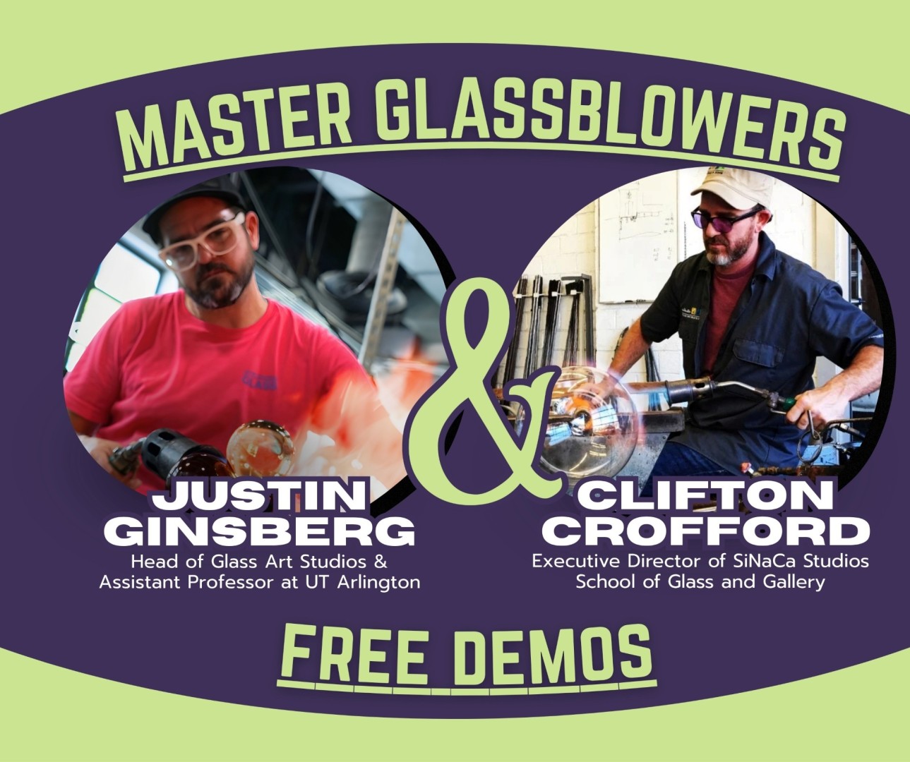 Thanksgiving weekend, watch the first-ever collaboration between two Texas glassblowing masters -- Justin Ginsberg head of UT Arlington’s glass studios and Clifton Crofford, founder of SiNaCa Studios. Watch them fire up the hot shop at Fredericksburg Glassblowing as they create side by side during free live glassblowing demonstrations: