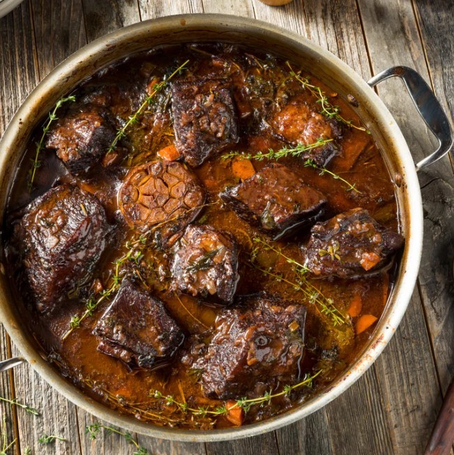 Menu: Baked Gruyere in Pastry with Rosemary and Garlic, Shredded Brussel Sprout, Candied Bacon Salad, Cider Braised Pot Roast, Crispy Sage Butter Potatoes,