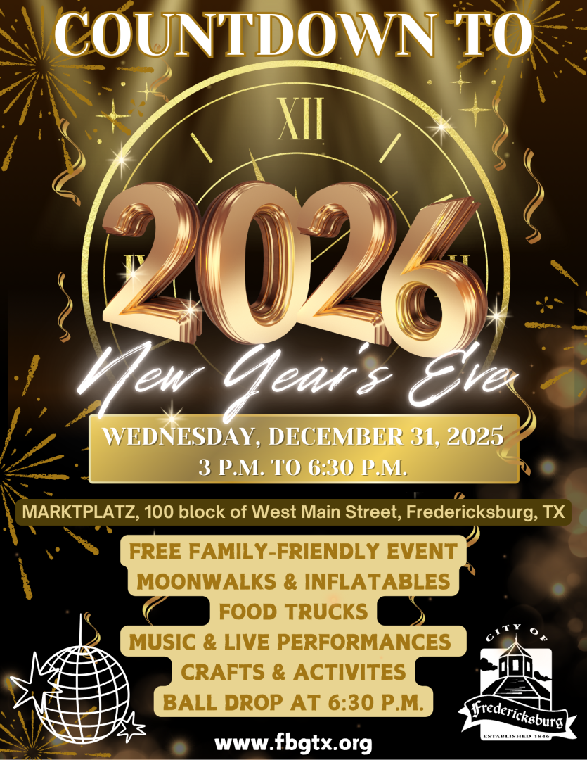 Help the City of Fredericksburg ring in the New Year! This family-friendly event will feature moonwalks and inflatables, games, activities, music, dance performances, face painting, and more! Food & beverages available for sale. At 6:30 p.m., the ball will drop and signify the beginning of 2026!