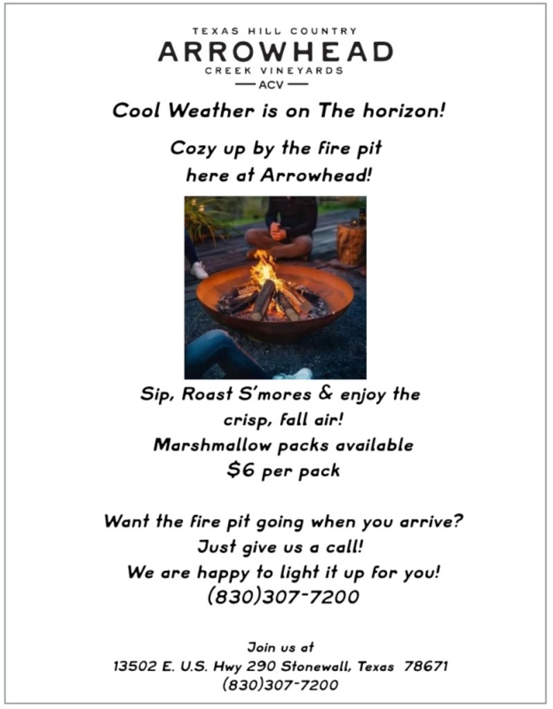 Open Fire Pit Invitation @ Arrowhead Vineyards13502 E. U.S. Highway 290