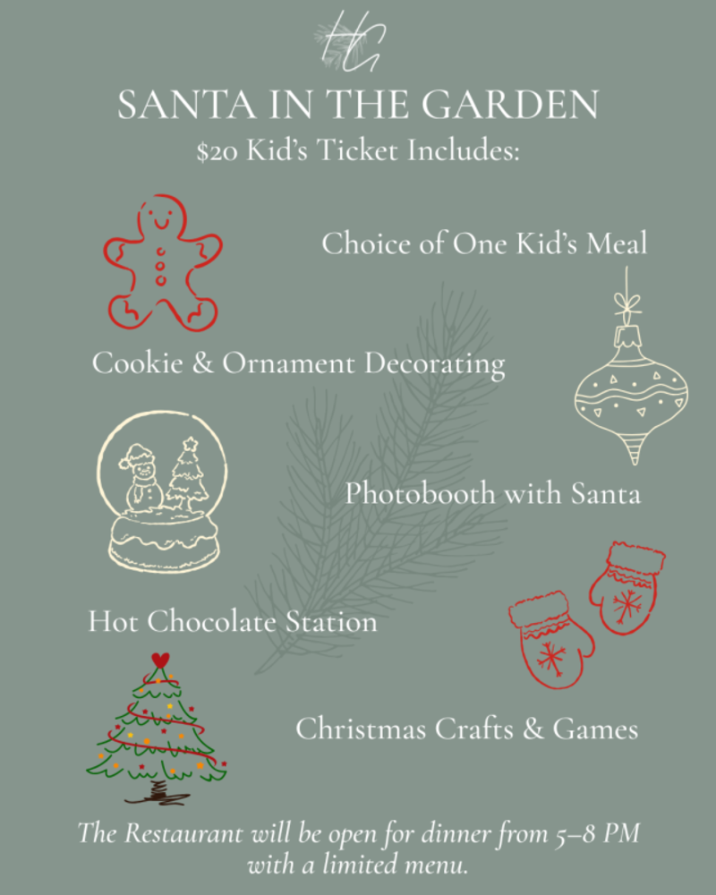 Join us for our annual Santa in the Garden Event | Wednesday, December 17th | 5–7 PM