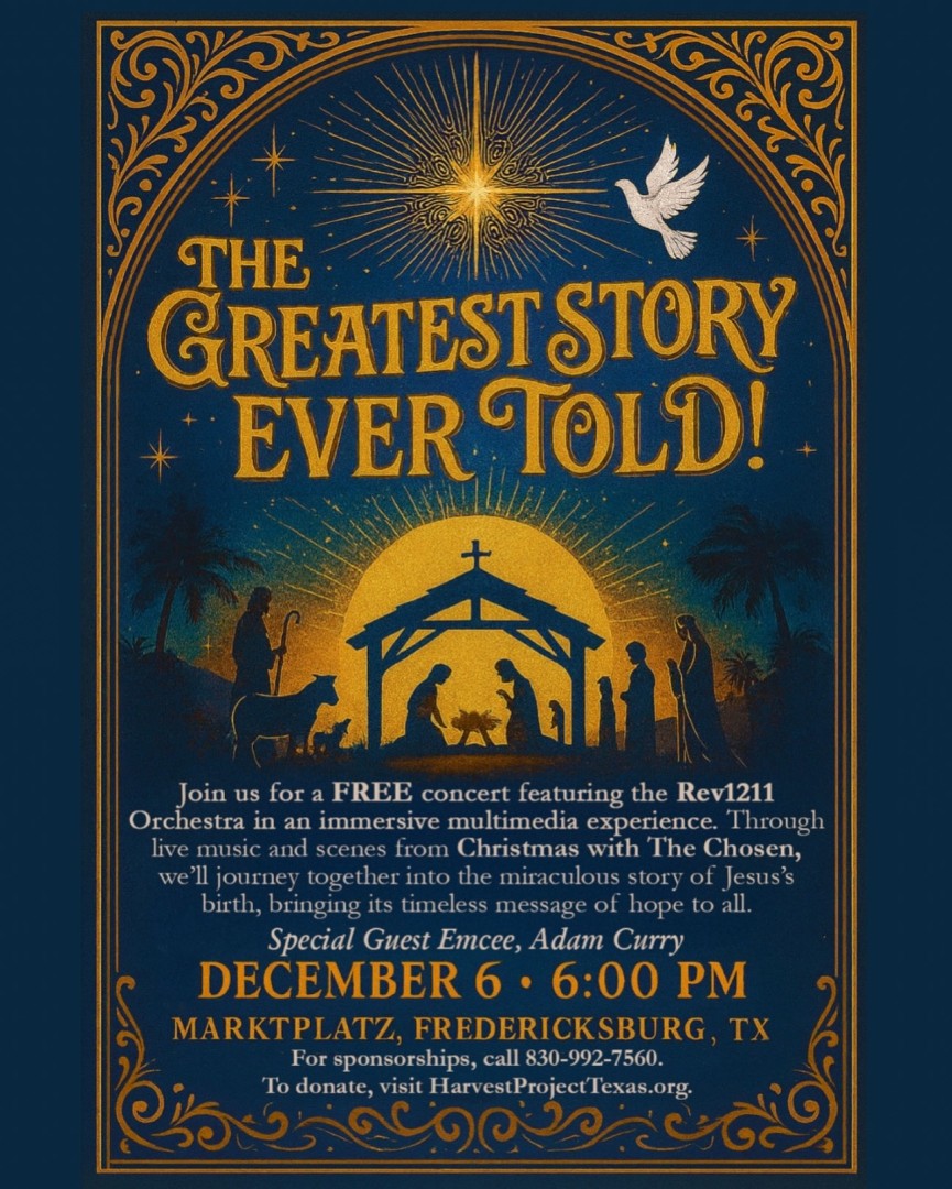 The Second Annual Greatest Story Ever Told – The Birth — a free multimedia concert featuring live music from Rev1211 Orchestra and clips from Christmas with The Chosen.