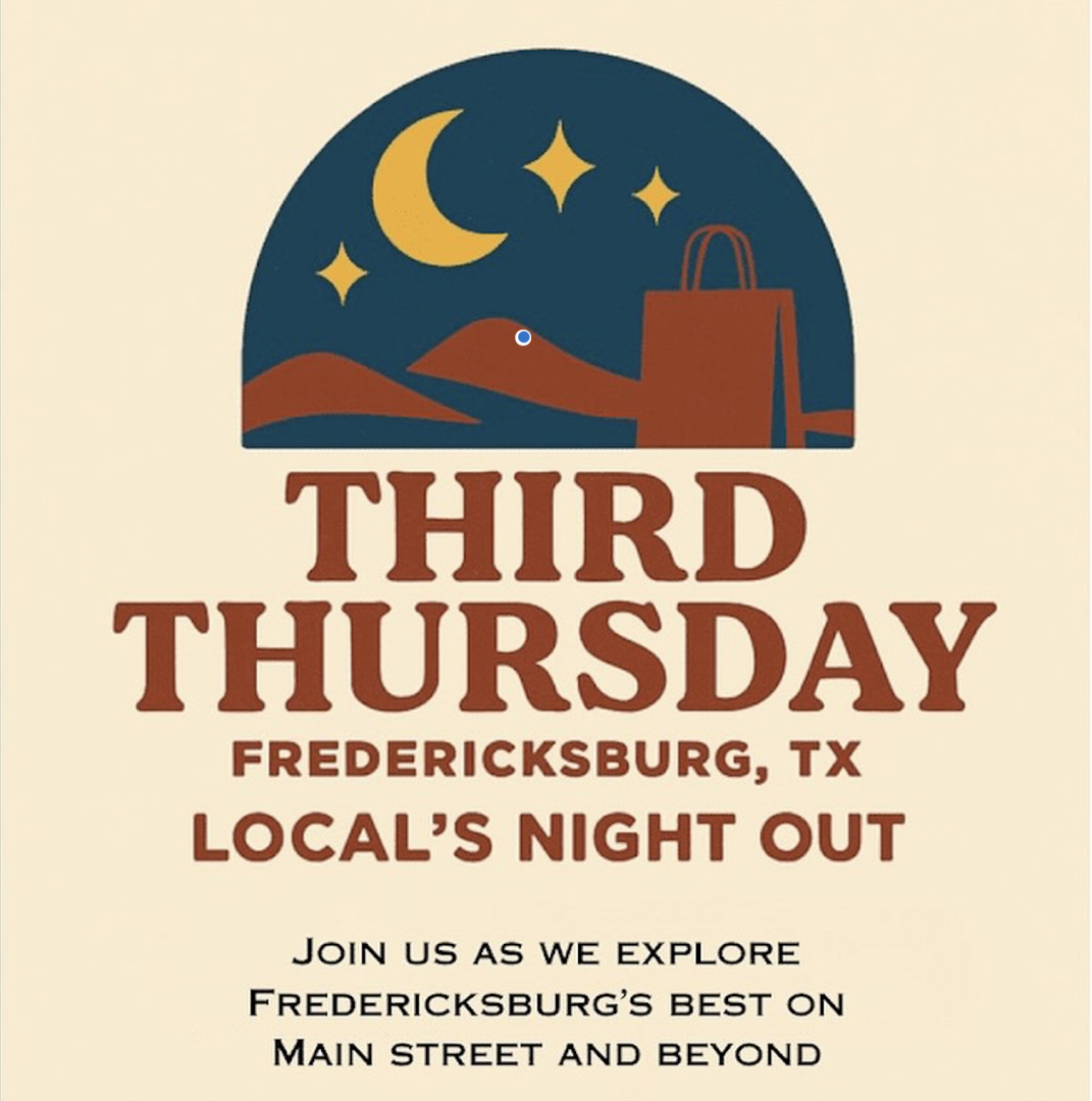 This Thursday evening, we’re toasting to our Hill Country locals. Every Third Thursday of the month local retailers and restaurateurs will be creating experiences -featuring items, doing tastings and more all for our local crowd. Join us and walk Main Street and off Main to explore and experience everything that Fredericksburg has to offer!!!