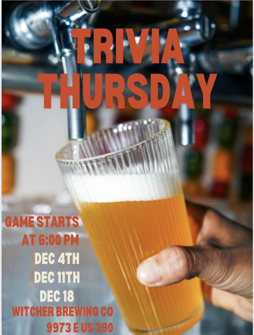Trivia at Witcher Brewing- Recurring every Thursday9973 E. U.S. 290